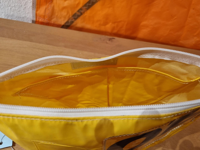 Kulturtasche aus Regenjacken-Upcycling.